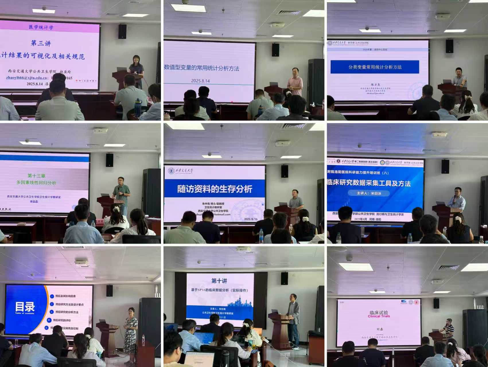 西安交通大学医学部及公共卫生学院对本次培训班高度重视,组织专题会议讨论,紧扣培训主题制定了较为全面的教学计划。旨在夯实基础知识,运用技术赋能进行高阶实战演练,不断提升临床医生科研能力。课程涵盖流行病学、卫生统计学、营养与食品卫生学、医学人文等方面。公共卫生学院曾令霞教授、陈静宏教授、党少农教授、韩蓓教授、罗小琴教授等二十余名专家教授为培训班授课。
